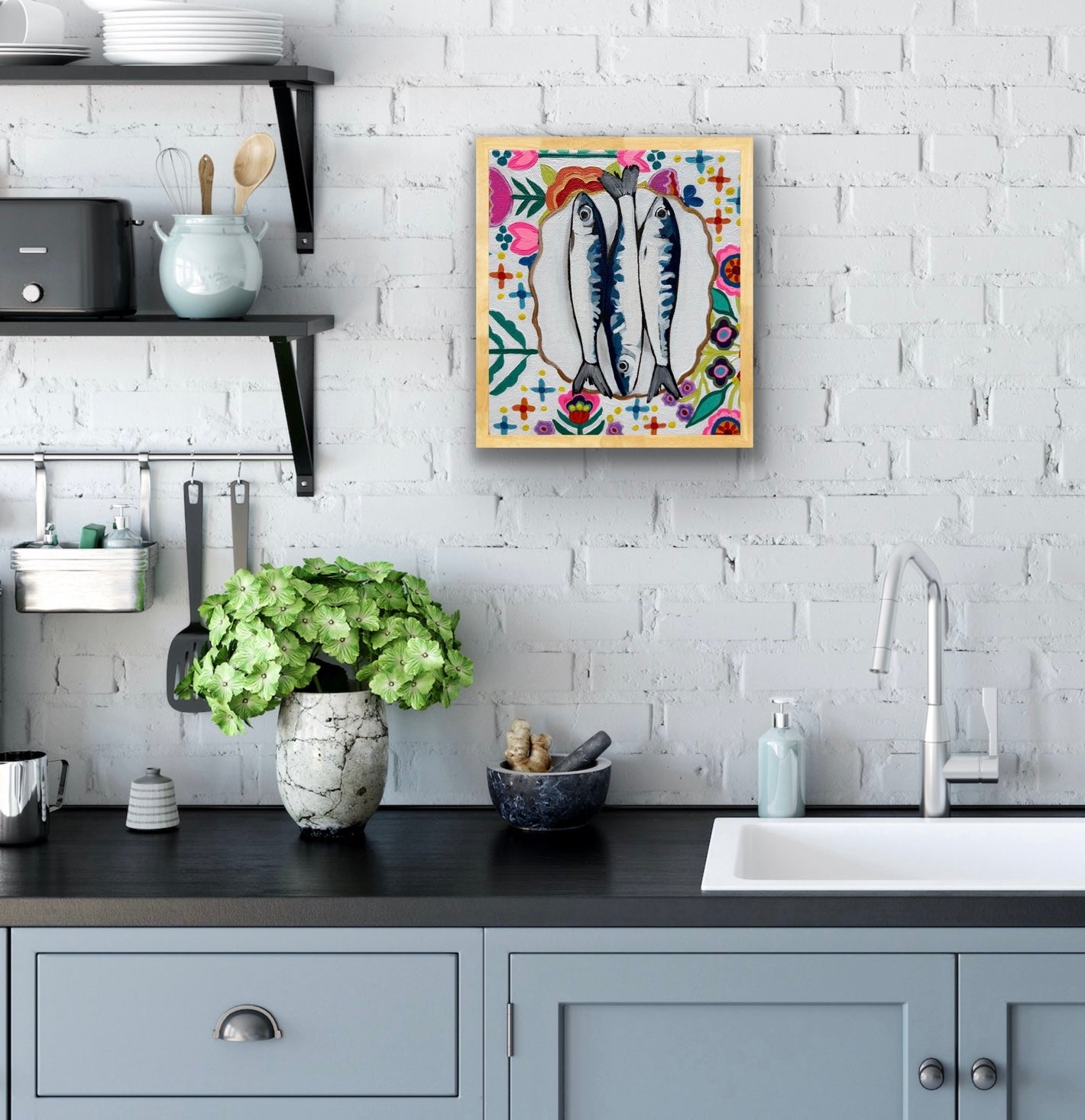 Ready to hang with wire + D-rings